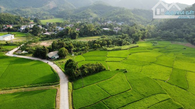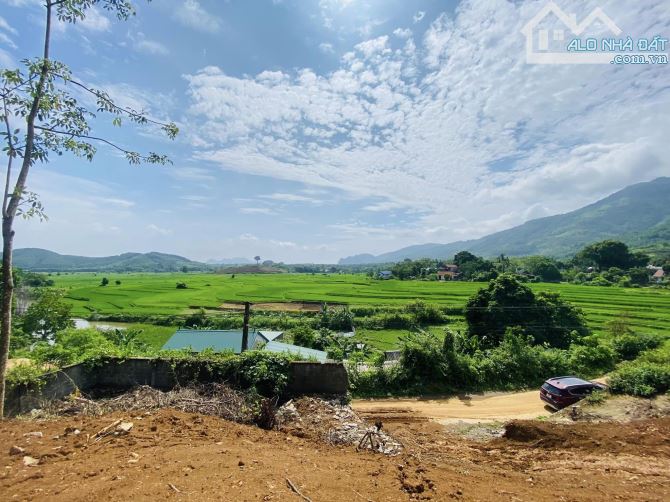 Diện tích đất khoảng 500m2, trong đó có 200m2 đất thổ cư và 300m2 đất vườn. Mặt tiền rộng ~20m, bám đường bê tông, phía sau là cánh đồng lúa mênh mông và những dãy núi trùng điệp, tạo nên một khung cảnh nên thơ và thư thái.